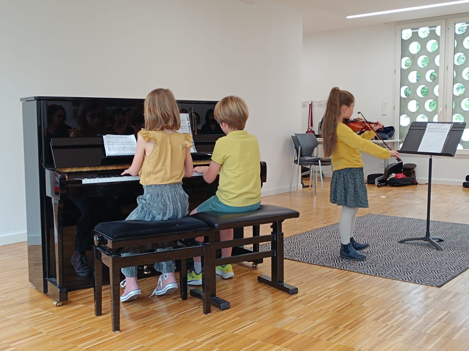 Pour le dernier cours de violoncelle, Geneviève à ouvert la porte de sa classe de violoncelle aux parents très heureux de venir assister à un petit concert .