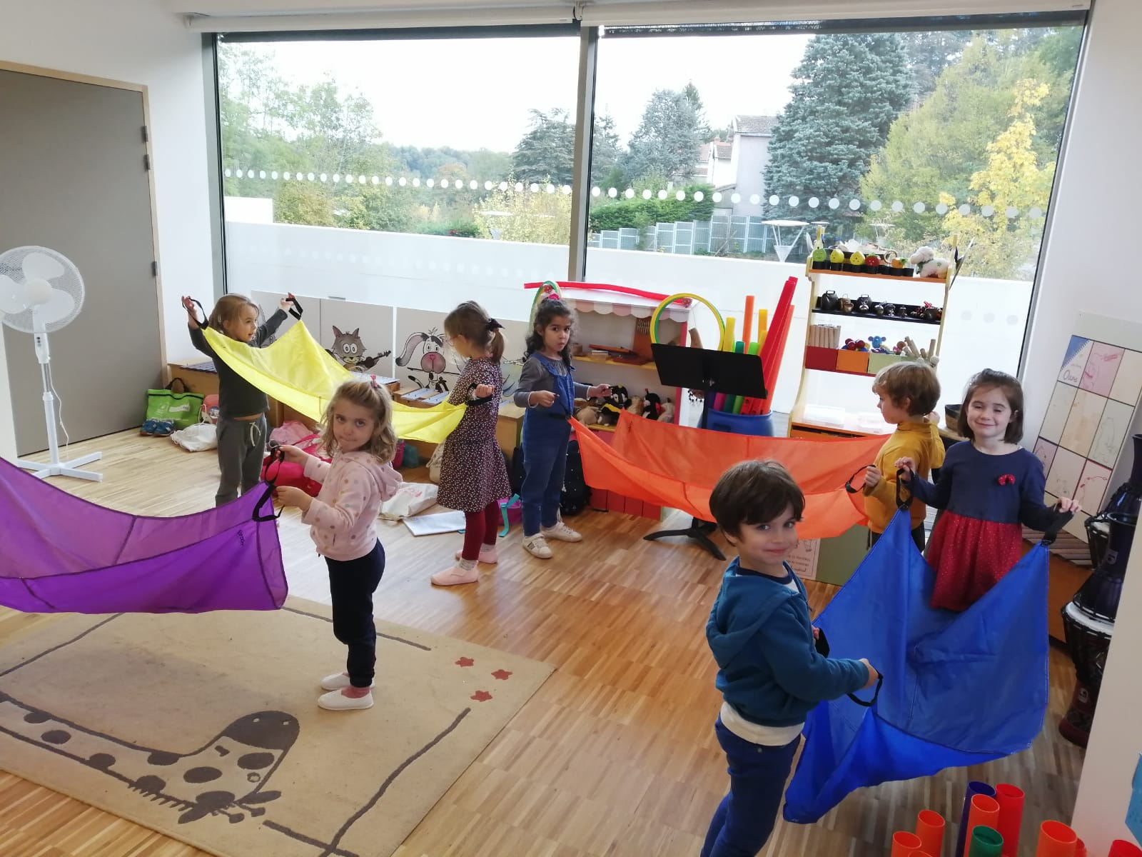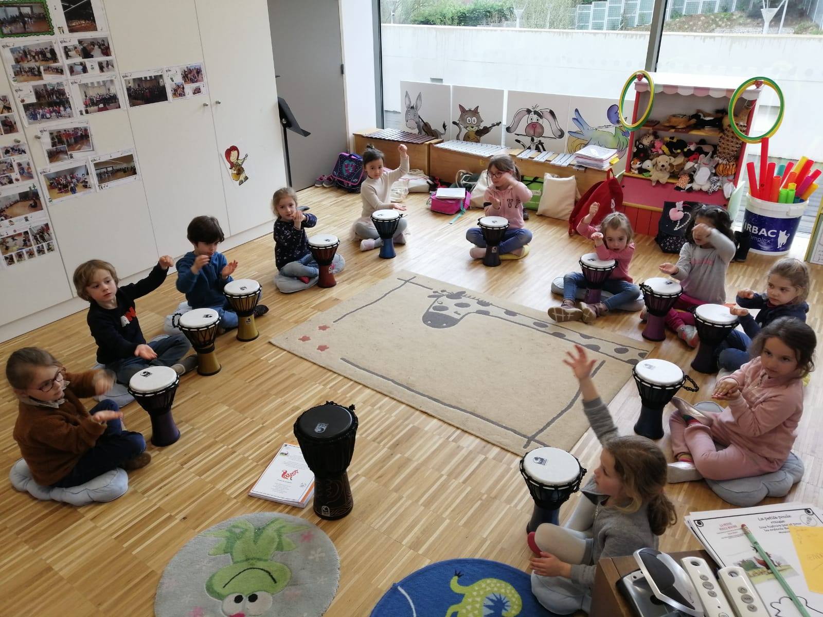Cécile accueille les enfants dans des salles prévues et pensées pour eux. En petits groupes (moins de 10 élèves par groupe) avec du matériel spécialisé dans la petite enfance, elle met ses talents de musicienne au service de la découverte musicale. Grace à une grande variété d’instruments à percussions, vos enfants découvrent mille et une facettes de la musique avec des jeux ludiques.