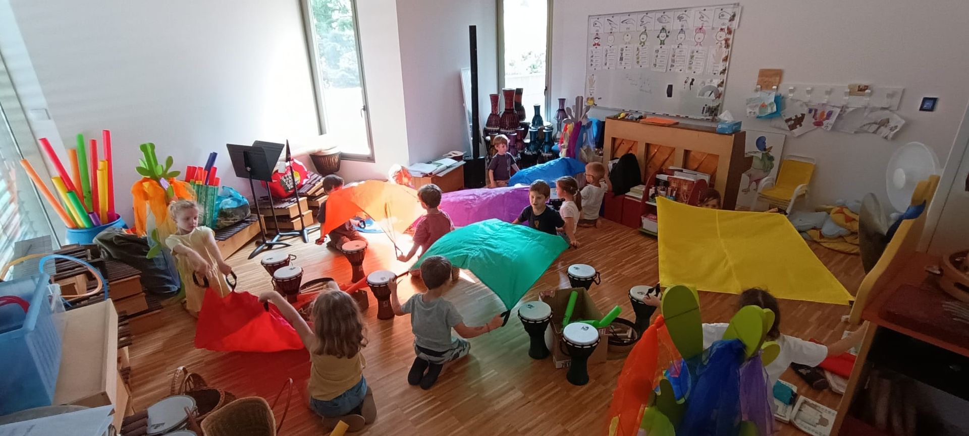 Ce cours permet aux enfants de s’immerger dans un monde sonore et musical adapté à leur âge. Le travail musical est axé sur :